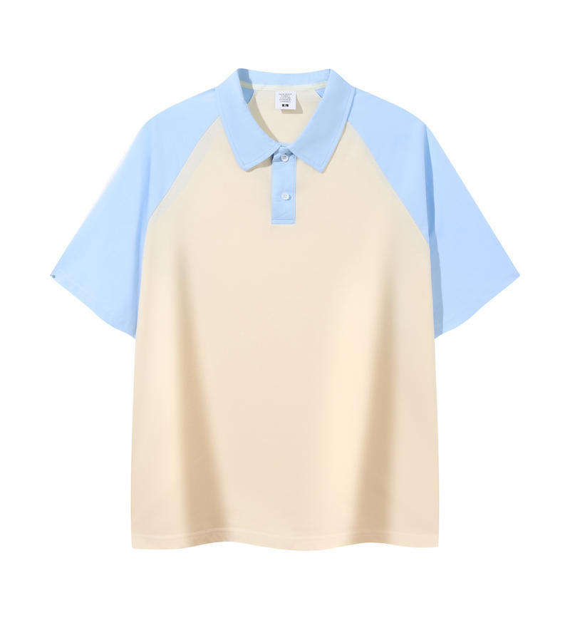 200G Pure Cotton Raglan Color Block for Polo Shirt for Men Summer Trendy Loose Casual Short Sleeve T-Shirt Turn-Down Collar
