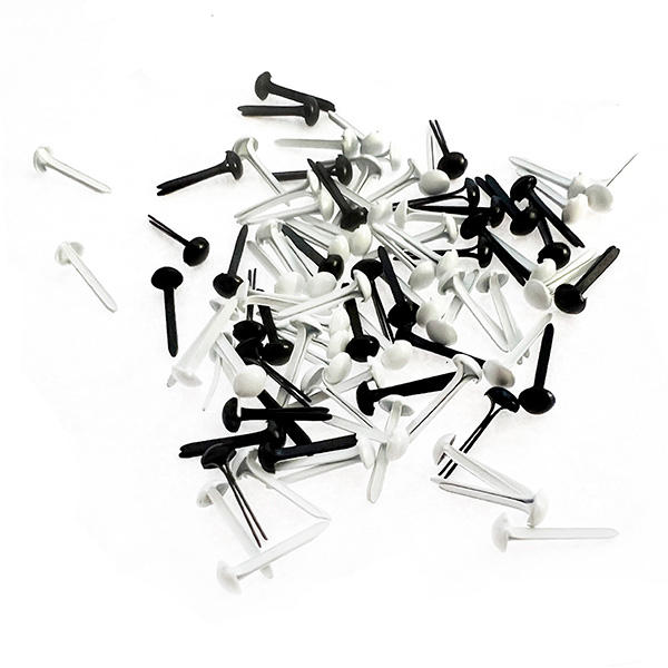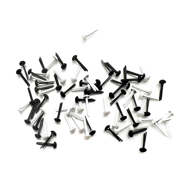 200Pcs Black and White 3mm X 3/8"L Mini Round Head Iron Paper Fasteners Brads