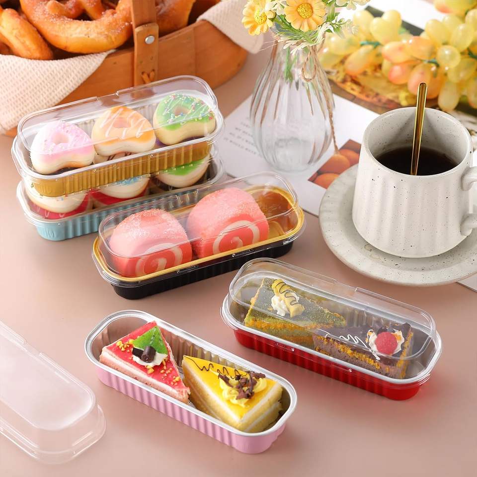 200ml 4oz Color Coated Aluminum Foil Loaf Pan With Dome Plastic Lid Disposable Colored Aluminum Foil Baking Container