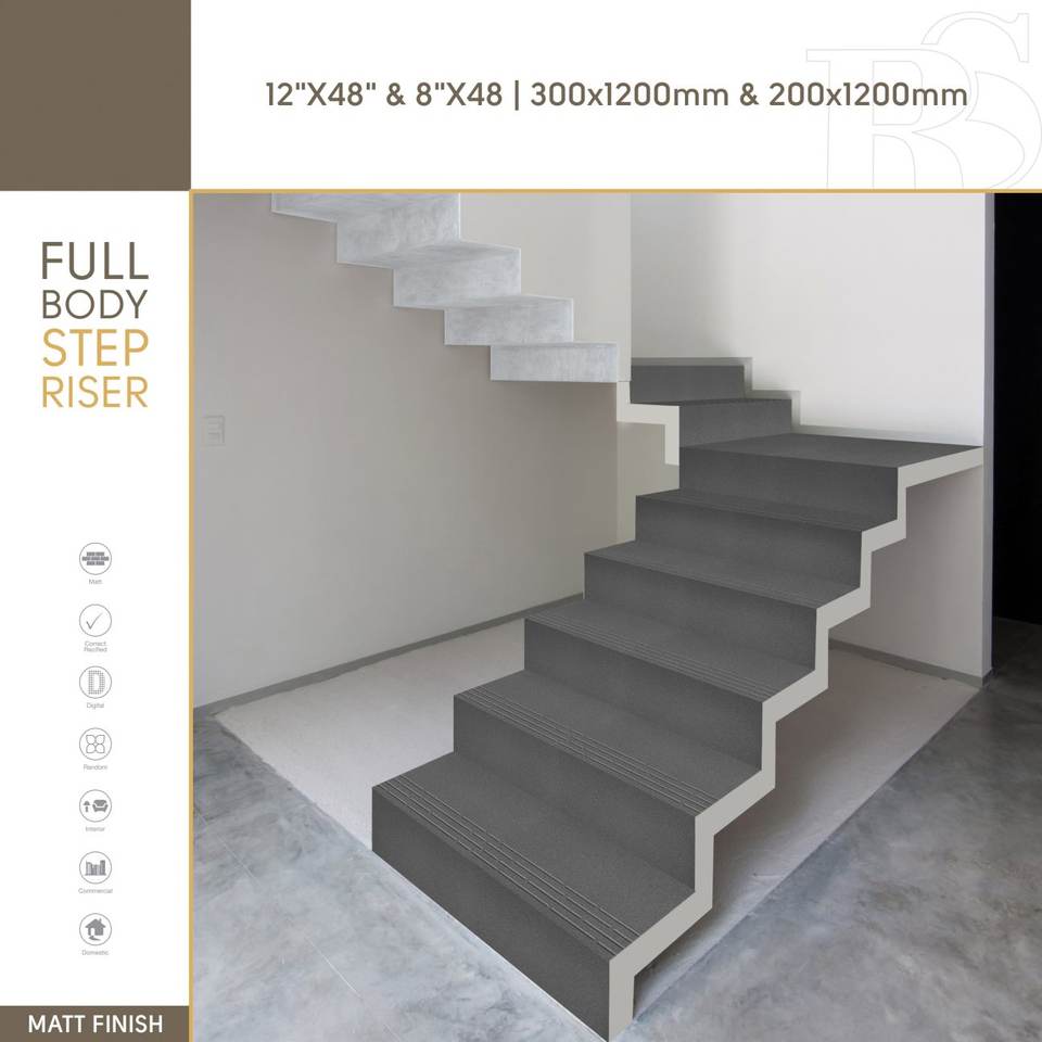 200x1200mm 300x1200mm Step and Riser Porcelain Tiles | Stylish Full Body Stair Tiles for Outdoor Indoor Steps