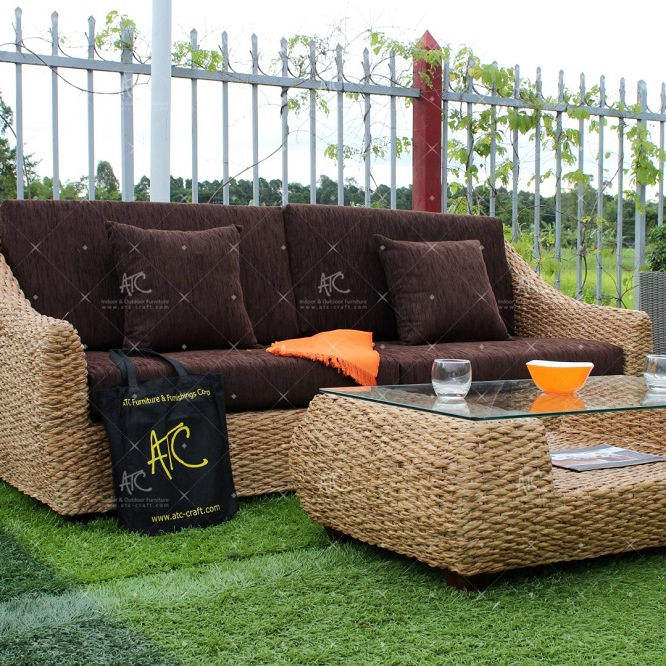 2018 Antique Natural Water Hyacinth Indoor Sofa Set Elegant for Living Room Villa Apartment Hotel Home Furniture