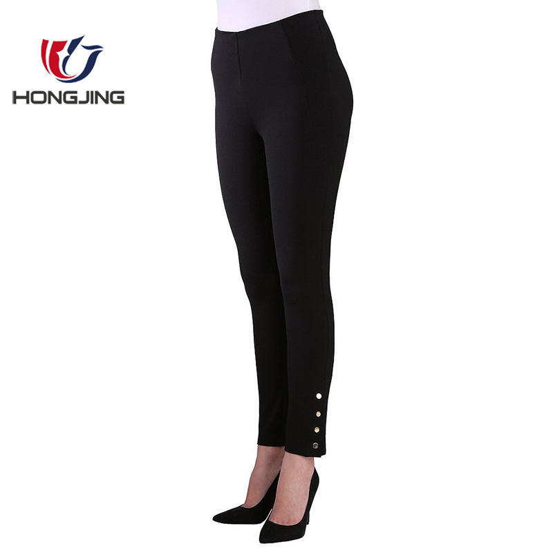 Product name:calf length trousers elastane waist pant with snap