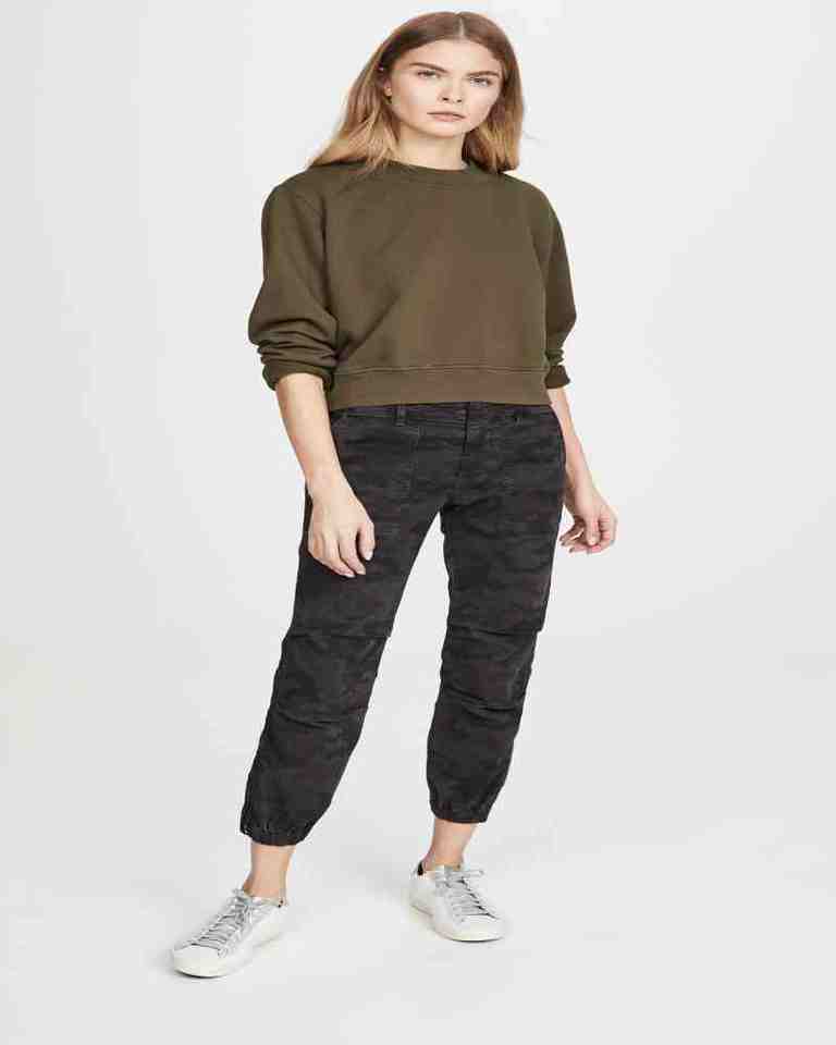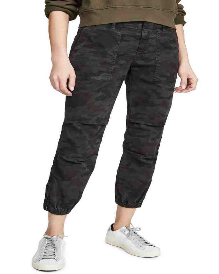 2019 Women's Black Cropped Camouflage Pants High Waist Loose Sweatpants Jogger with Logo Decoration Made Canvas for Summer Use