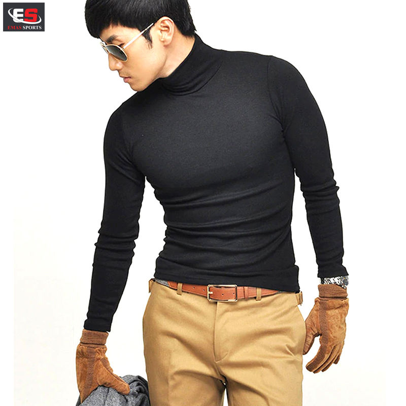 2020 Fall New Casual Mens Long Sleeve Man Cotton Turtleneck T-shirts Slim Fit Stylish Dress T-Shirts