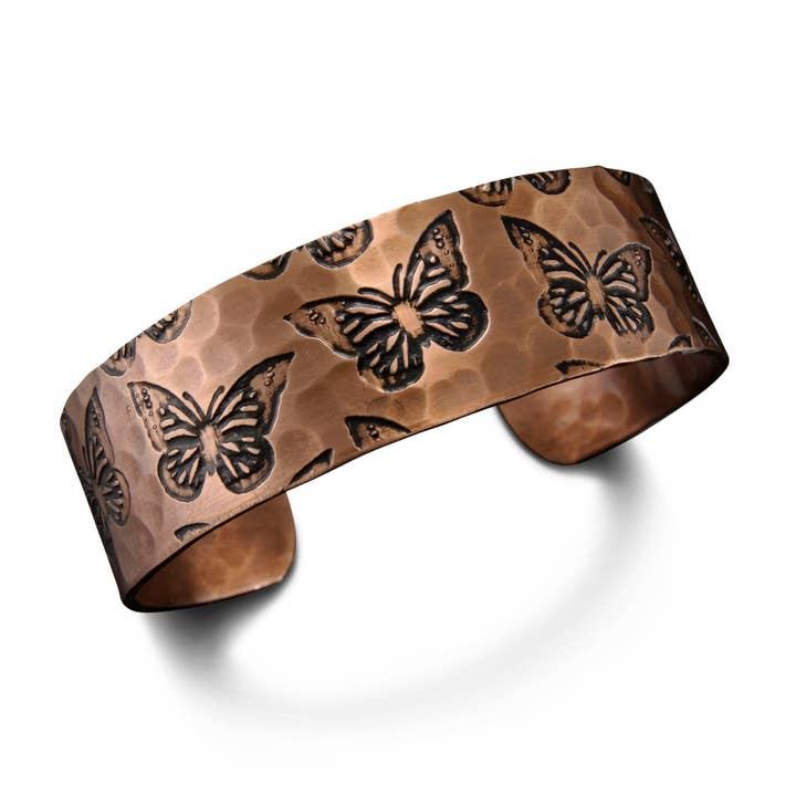 2020 France 12mm Bangles Chunky Antiqued Flower Embossed Copper Cuff Pure Copper Magnetic Therapy rustic hammer texture bracelet