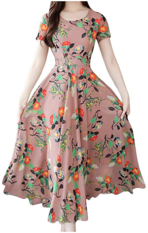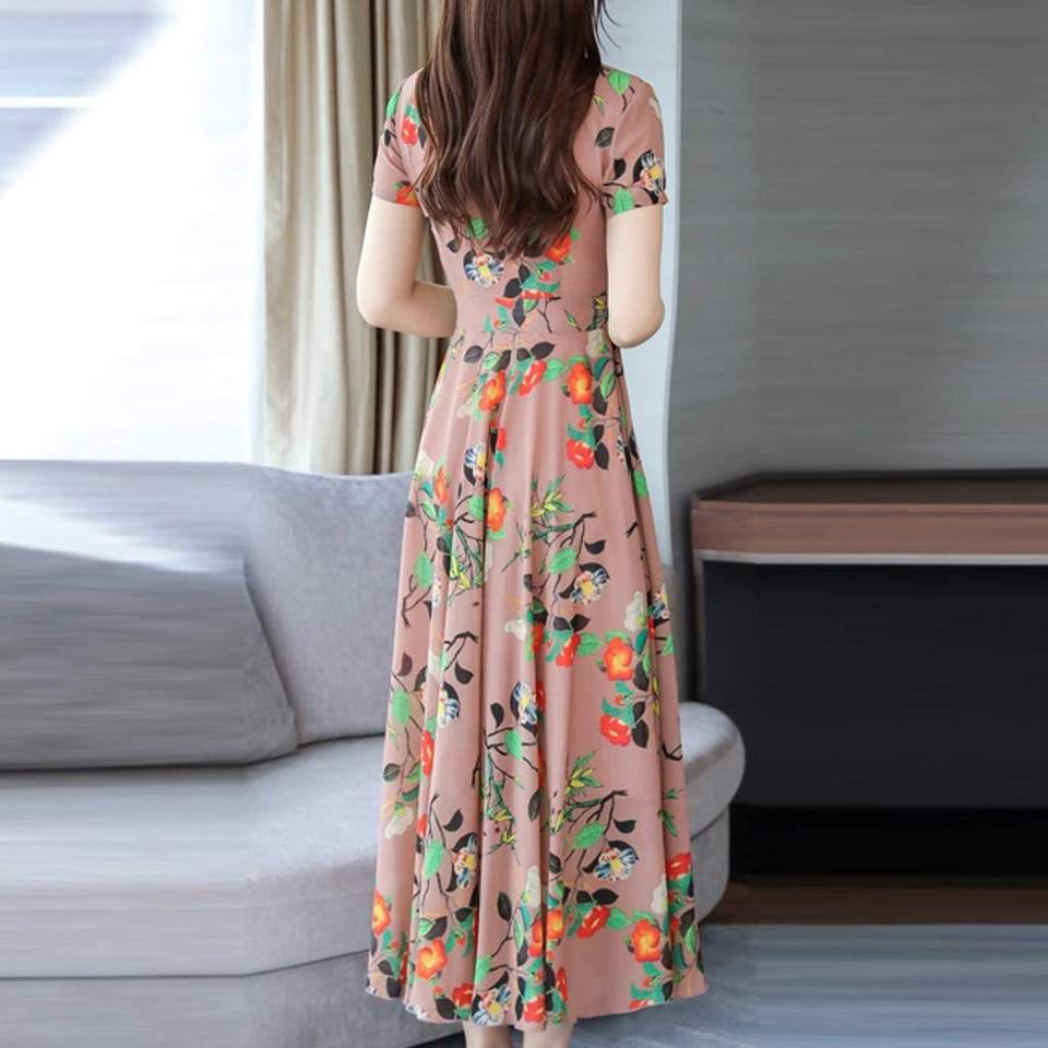 2020 French Vintage Fashion Floral Printed Simple Long Dress for Women