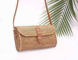 Rattan Rectangular Purses and Handbags for Ladies with Leather Strap