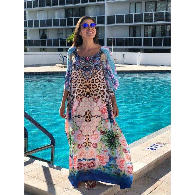 2020 New Hot Selling Women's Stylish Kaftan Casual Half Sleeves Beach Party Wear Silk Printed Long Kaftans Dress
