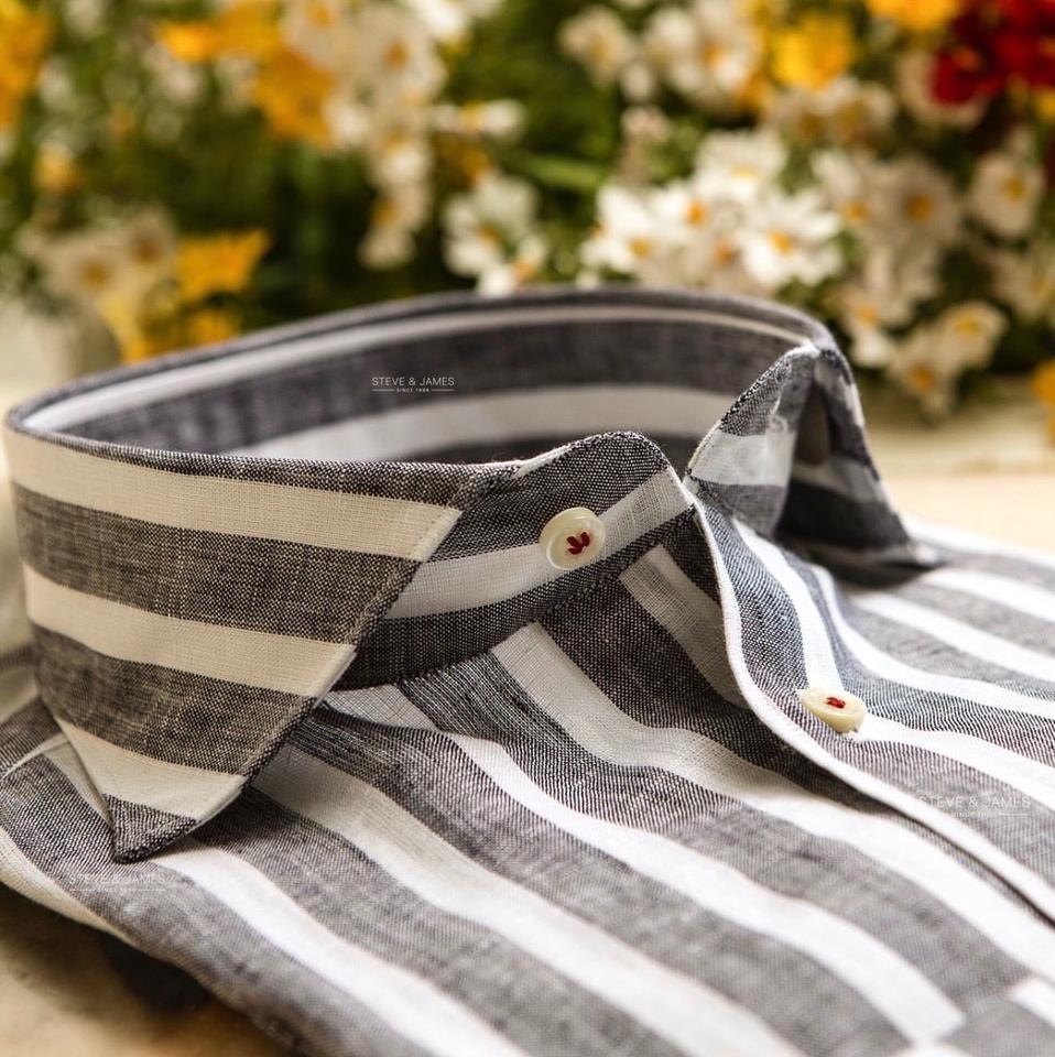 Long Sleeve Casual Shirt Elastic-T 100% Cotton Striped Single Breasted Closure ODM Supply Size 6XL