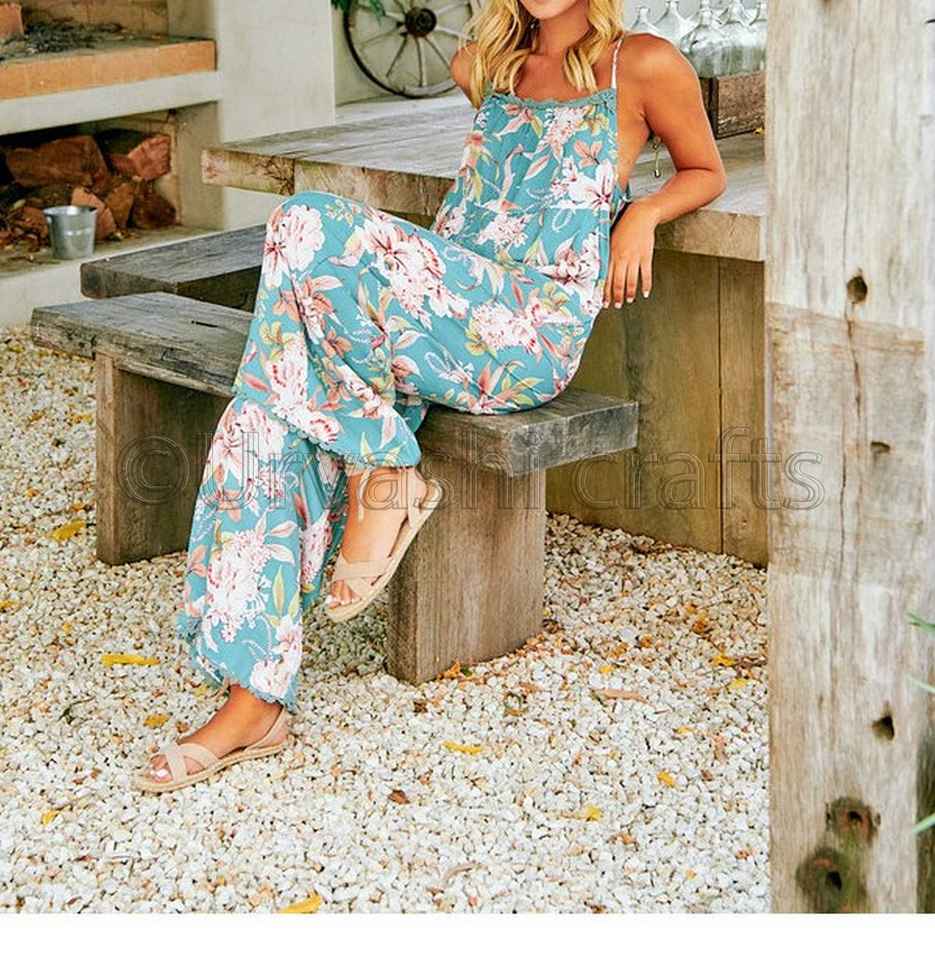 2020 New Women Outfit Summer Floral Printed Spaghetti Strap Neckline Wide Leg Long Sleeveless Jumpsuit
