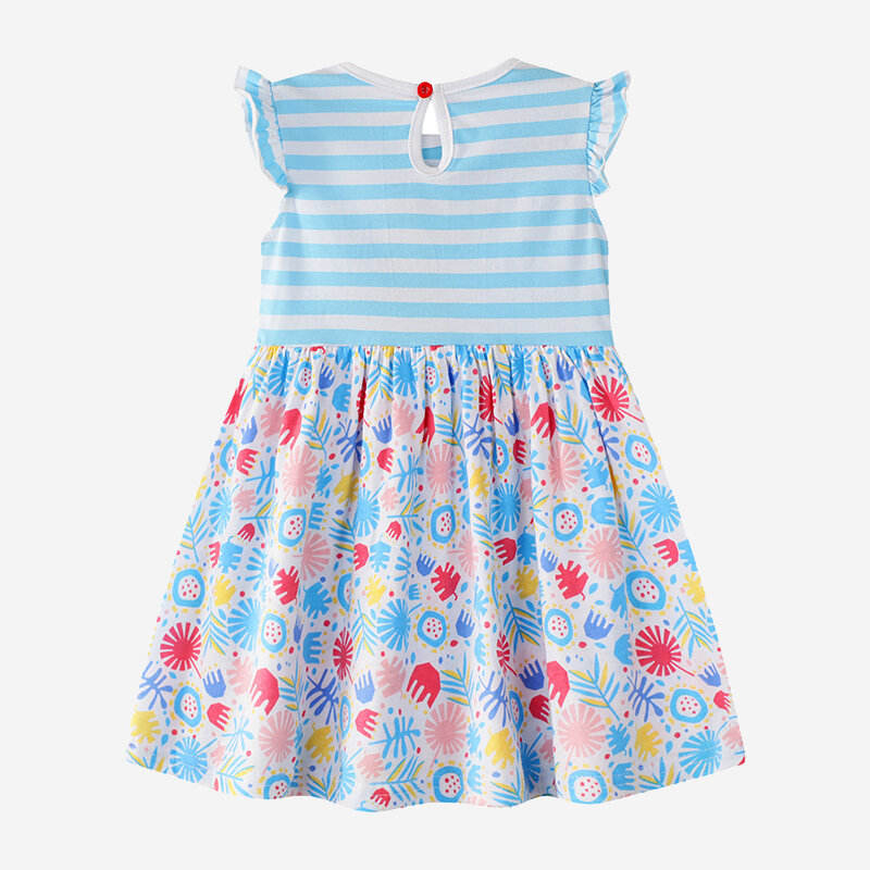 2020 Summer Children's Halter Maxi Dress with Flying Sleeves Sea Horse Blue Striped Floral Print for Babies