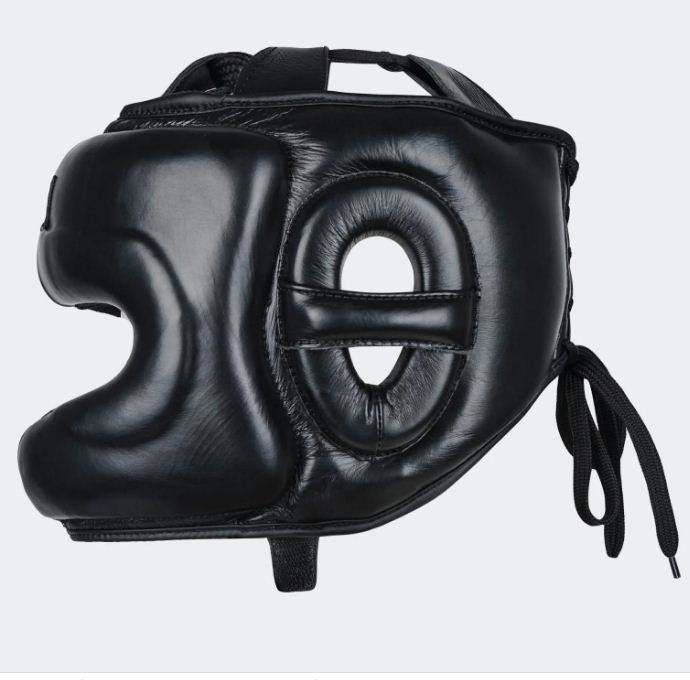 20205 Best Quality Custom Made Full Face Head Guard Durable Boxing Real Leather MMA Muay Thai Kickboxing Nose Bar Double Safety