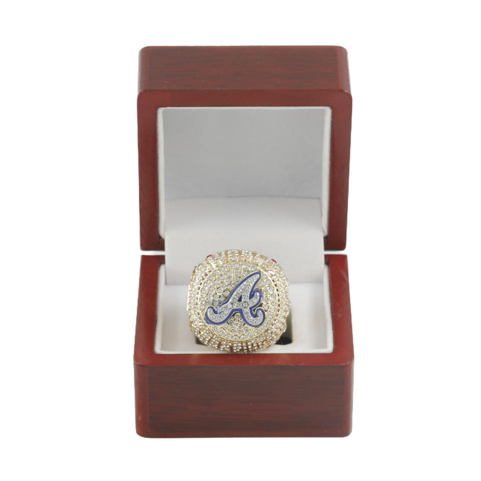 2021 Atlanta Braves Championship Ring Platinum Plated Alloy Crystal Rhinestone Set Traditional Magnetic Flip Design Men's
