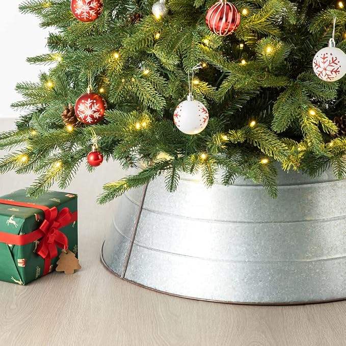 2021 Christmas Tree Decorations 26"D Galvanized Metal Tree Collar Metal Tree Skirt Tree Base Cover Decorative Christmas
