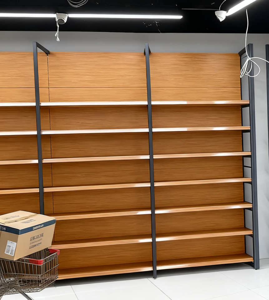 2021 Double-Sided Modern Metallic Gondola Heavy-Duty Supermarket Shelf Rack Grocery Store Display Rack Freestanding Shelf