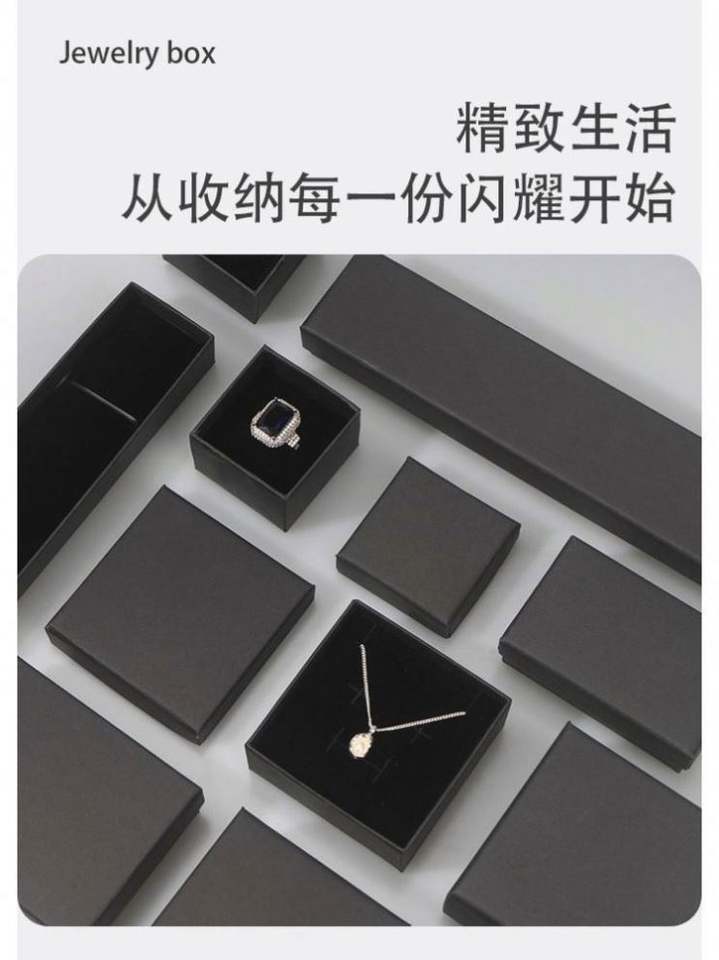 2021 Gift Jewelry Box Exquisite Custom Logo Black Kraft Paper Necklace Bracelet Ring Earrings Cheaper with Sponge Jewelry Box