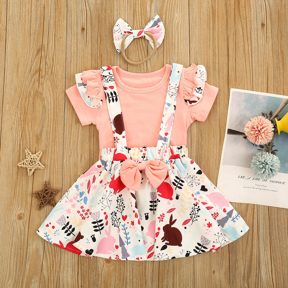 2021 Girl Easter Clothes Cotton Solid Top+Dress 2 Pic Set Bunny Print Kids Boutique Outfits