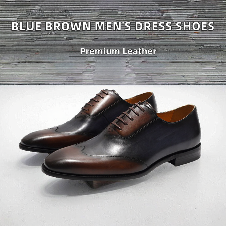 2021 Hot Selling Blue Brown Plaid Oxford Slip-On Pointed Waterproof Men's Dress Leather Shoes for Business Office Summer Autumn