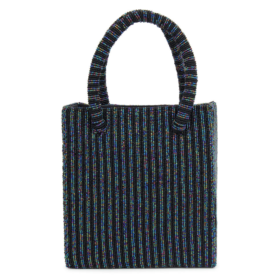 Ladies Black and Rainbow color Striped Tote Bag / Handbag