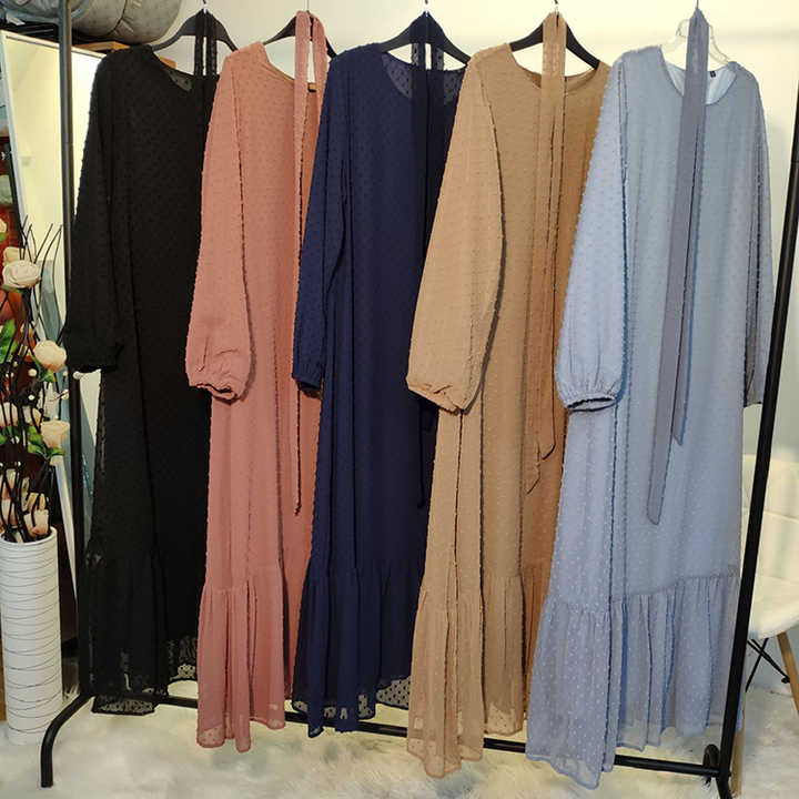 Keywords:Turkish Abaya British Polka Dot Chiffon Dress Women Dubai Abaya