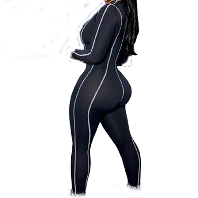 2021 New Arrivals Women Long-sleeve Reflective Jumpsuits High Waist Hip Lifted Sports Jumpsuits Customized Logo Jumpsuit