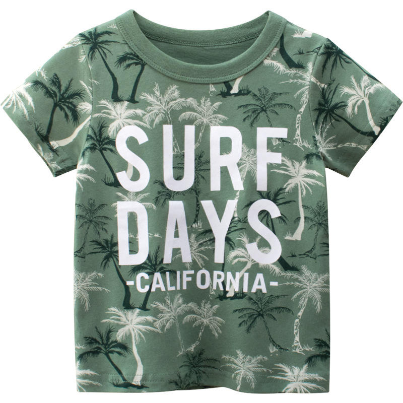 2021 New Summer Toddler Boy Green Printed Letter Short Sleeve Shirt 2-7T