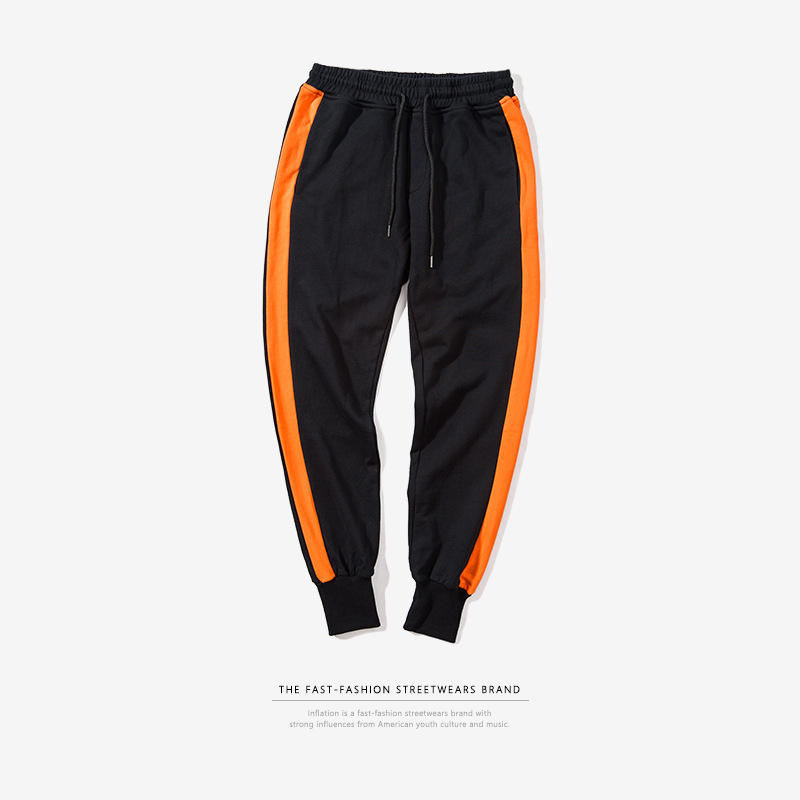 2021 OEM Men's Hip Hop Jogger Pants Contrast Color Cotton Spandex with Elastic Waist Patchwork Decoration Customizable Stripes