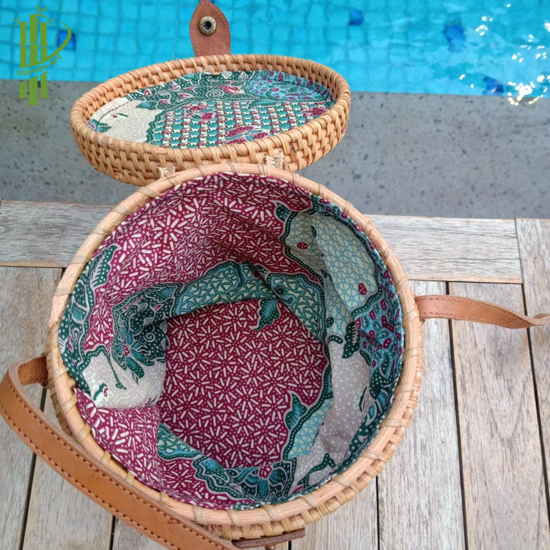 2021 Vietnam Factory Handmade Durable High Quality Round Bamboo Rattan Bag with Open Closure Hot Selling Summer Handbag