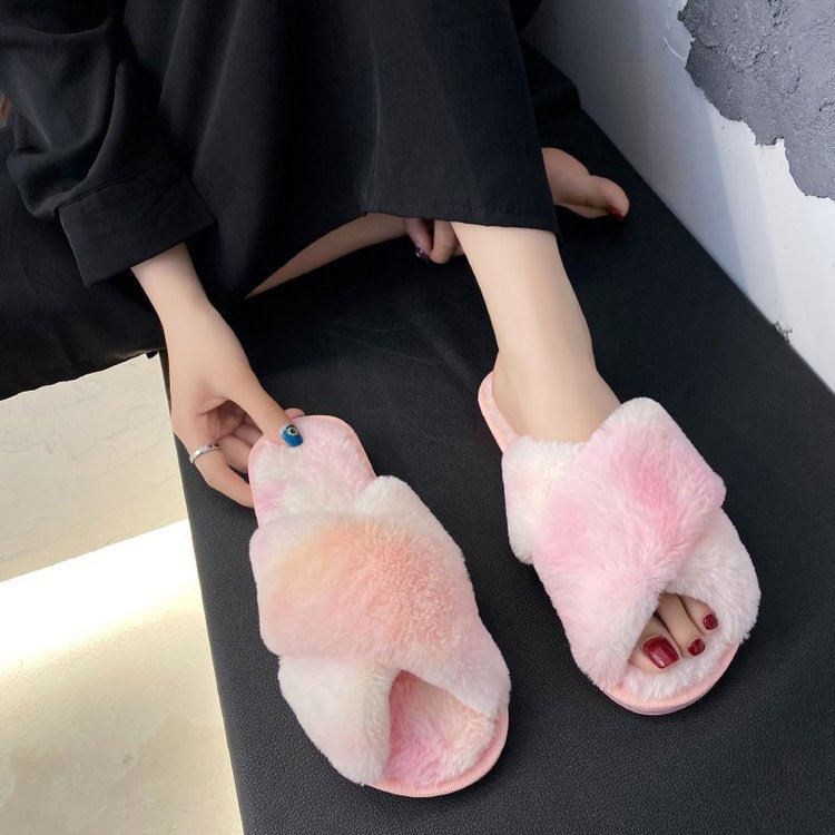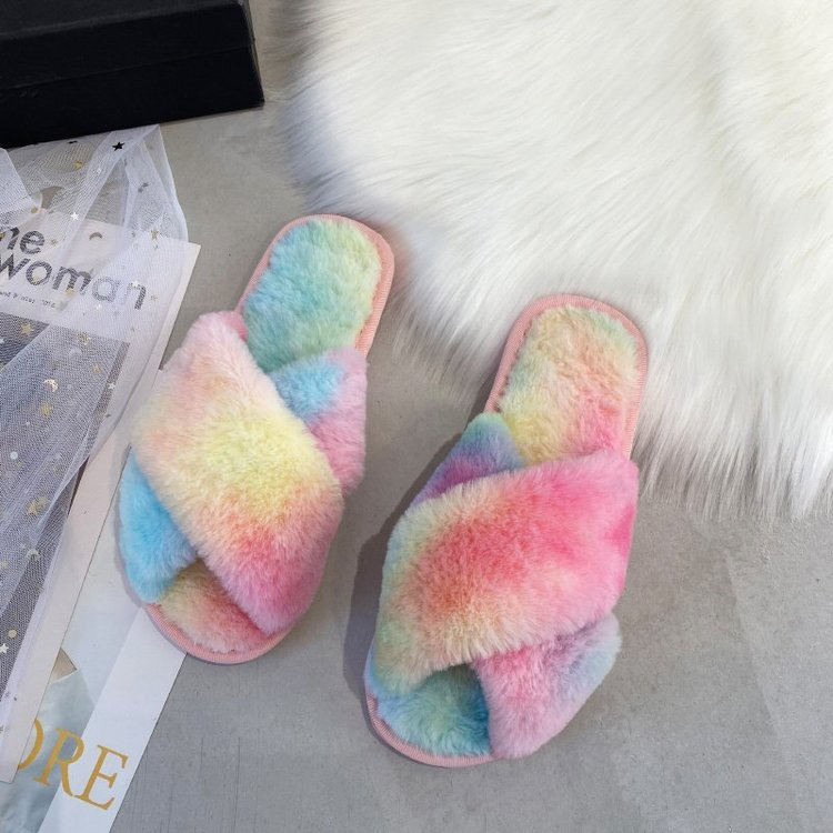 2021 Winter Wedding Customizable Tie Dye Bridesmaid Slippers Gold Silver Stamping Plush Faux Fur Lining EVA Outsole Upper House