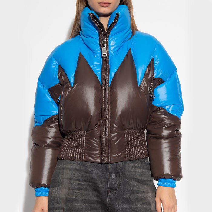 2021 Women's Fashion Coats New Casual Solid Color Long Sleeve Collar Puffer Jacket Waterproof Nylon Lining Sequined Knitted