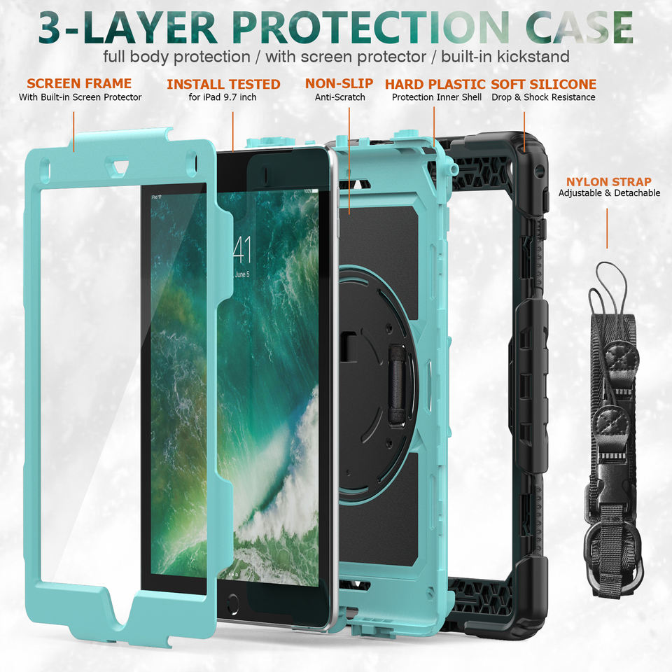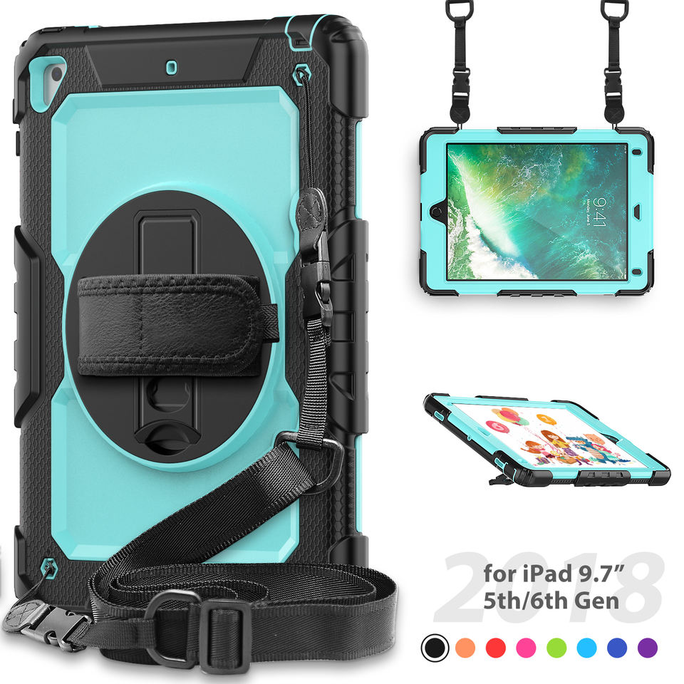 2022 9.7 Inch Heavy Duty Rugged Full Protection Silicone Tablet Case with Stand Strap for iPad Air 2 Pro Multi-color