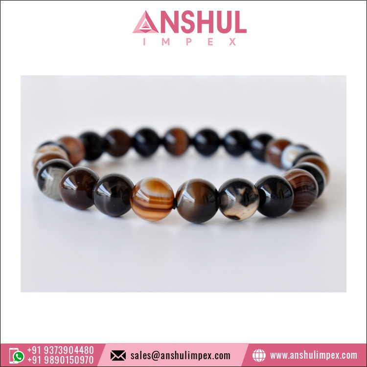 Product Name:Black Sulemani Agate Round Bracelet