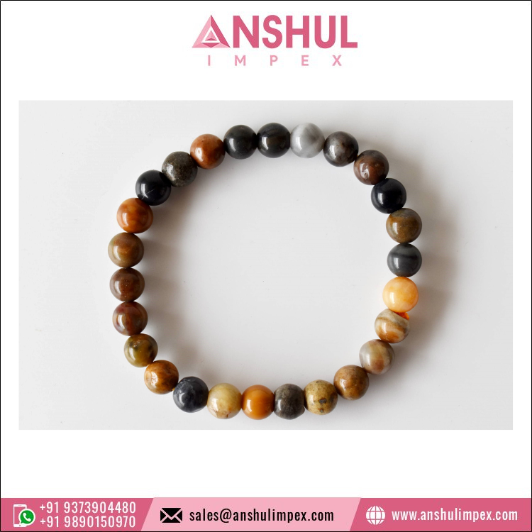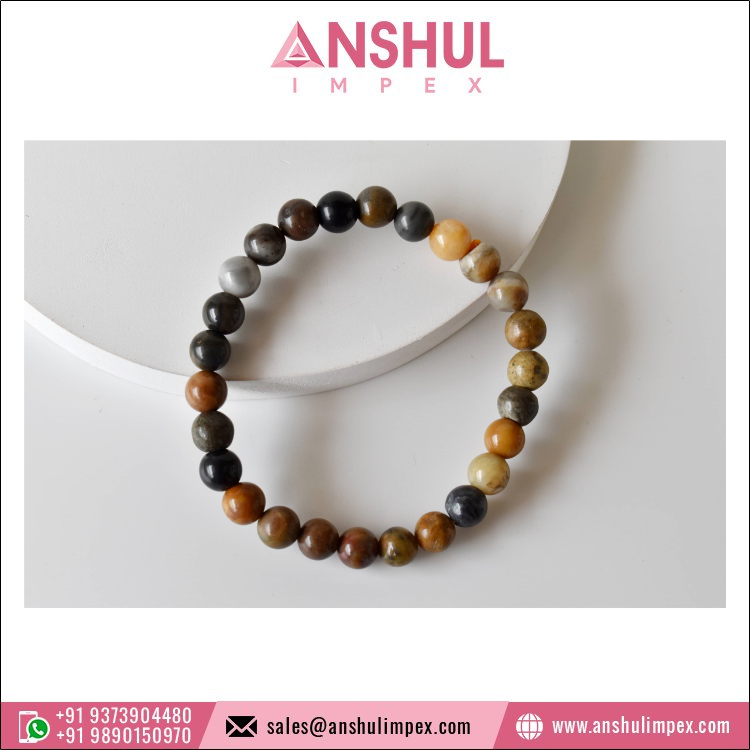 2022 Bulk Selling Brown Color Healing 7.5in Petrified Wood Round Gemstone Hand Beaded Bracelet