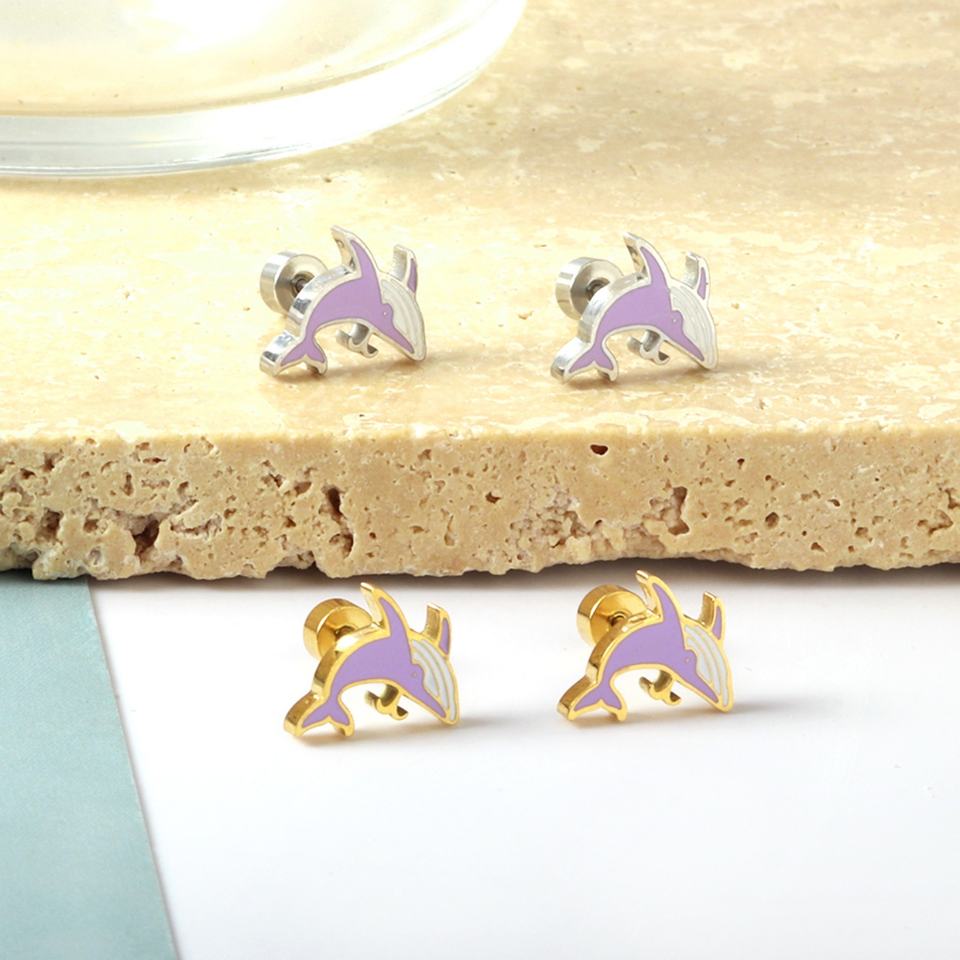 2022 Earrings Women Trendy Stainless Steel 18K Gold Plated Crabs Penguins Dolphins Cute Kids Stud Earrings