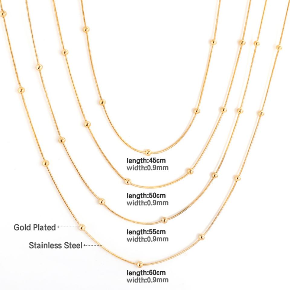 2022 Fashion Cheap 0.9mm*45-55cm Accessories Stainless Steel Gold Silver Round Snake Ball Necklace Chains