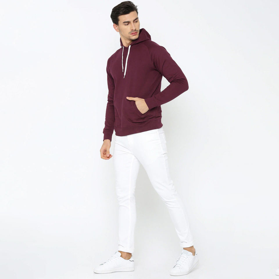 2022 Hot Selling Men's Polyester and Cotton Fleece Hoodie Solid Color Warm Winter Sweater with Hood