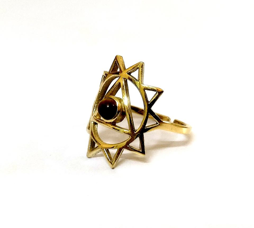 2022 New Adjustable Brass Gold Ring with Tiger Stone 7 Chakra Indian Yogic Boho Meditation Ring Elegant Jewelry