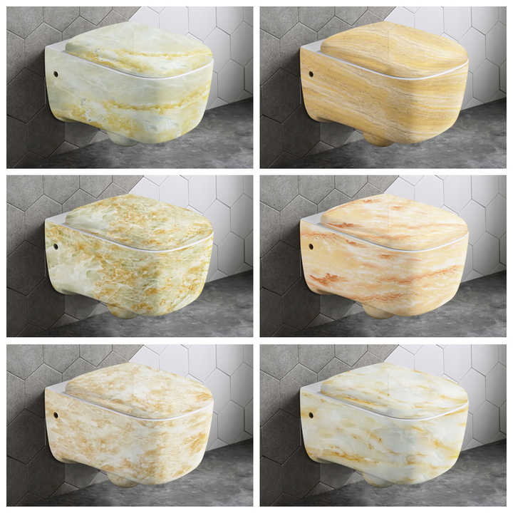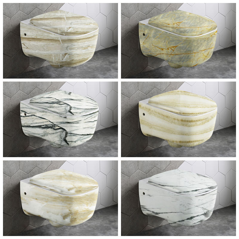 2022 New Design Soft Closing Seat Marble Toilet Wall Hung Toilet Bathroom Wall Mounted Toilet