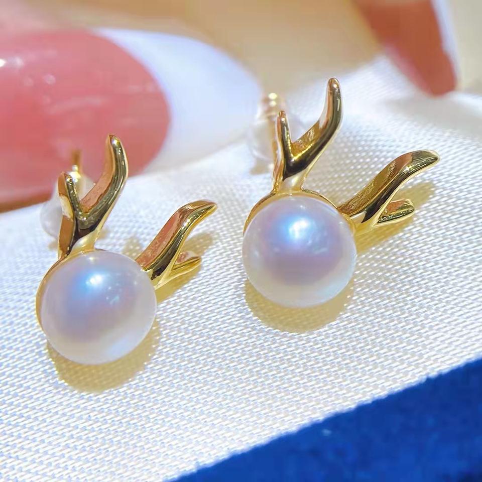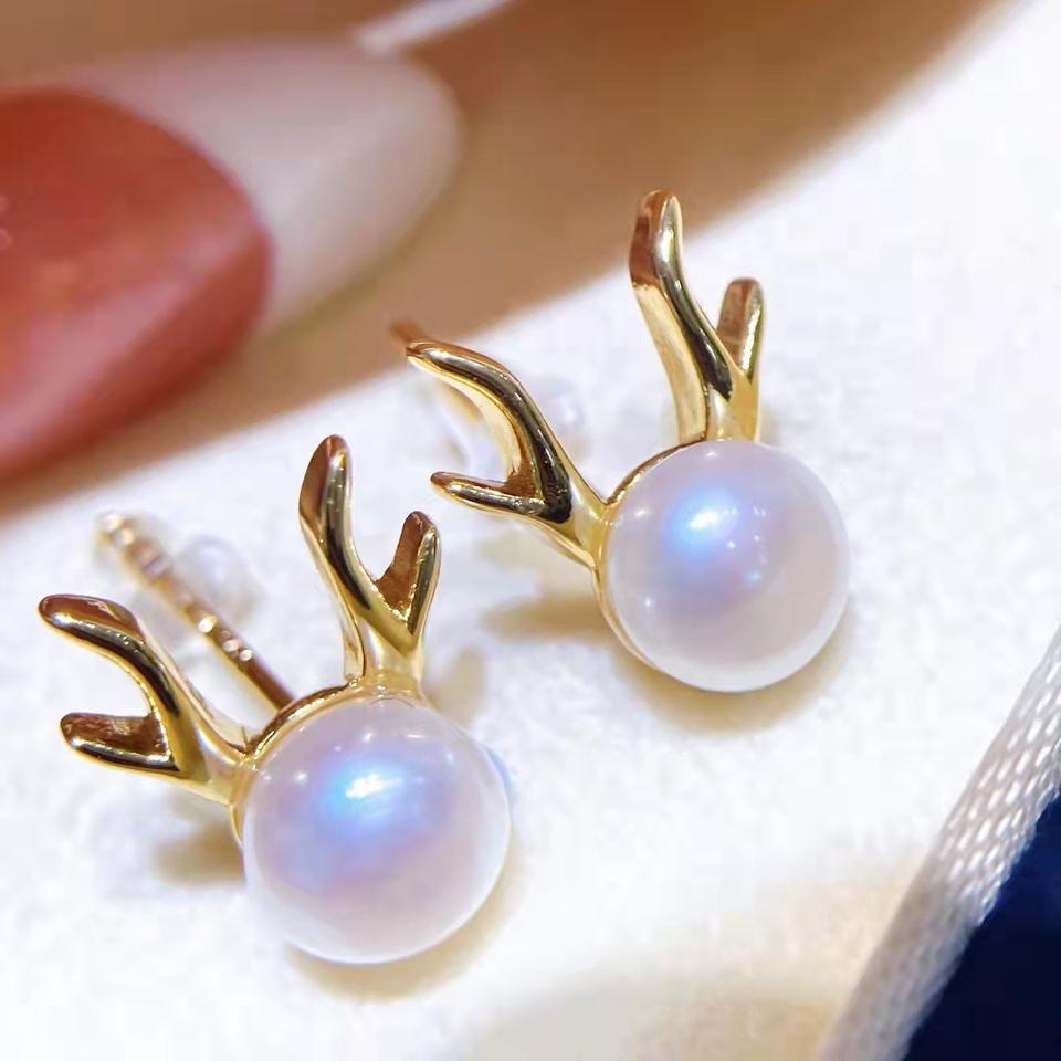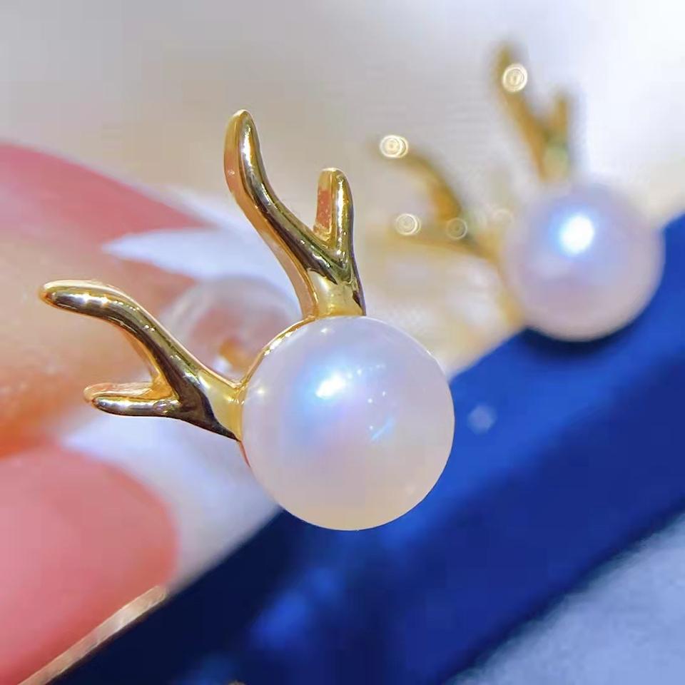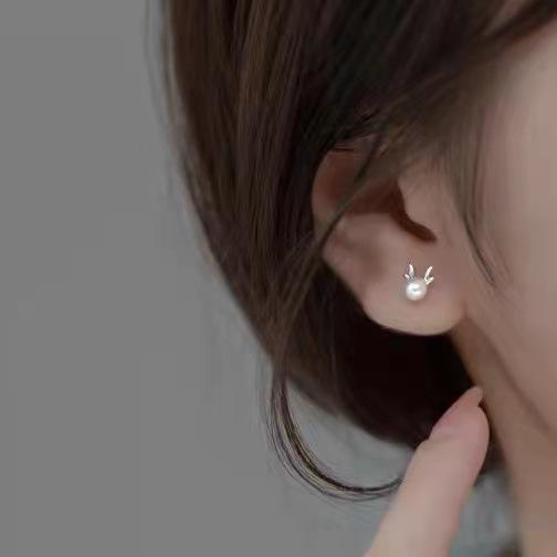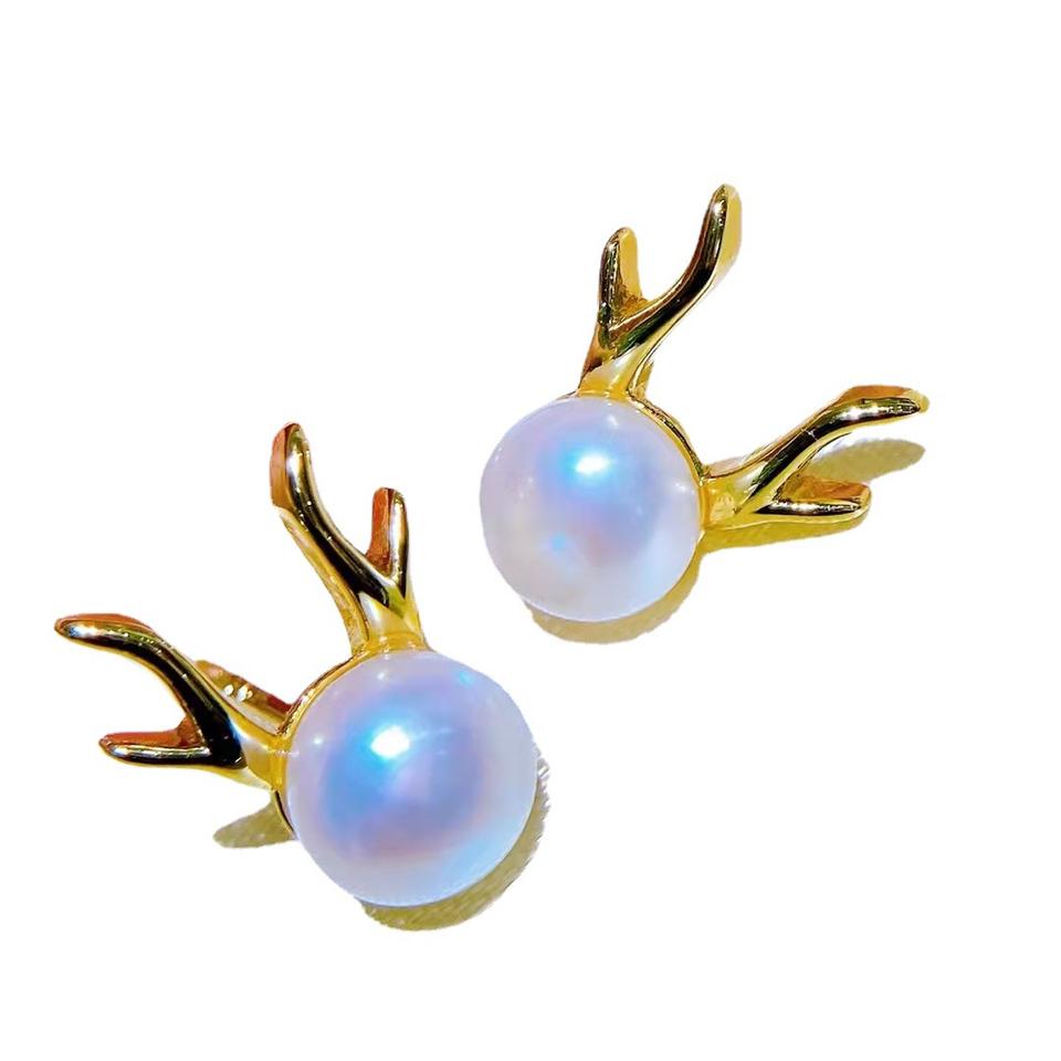 2022 New Ethnic Style Fresh and Elegant Lady Cute Deer Antler Freshwater Pearl 925 Silver Stud Earrings