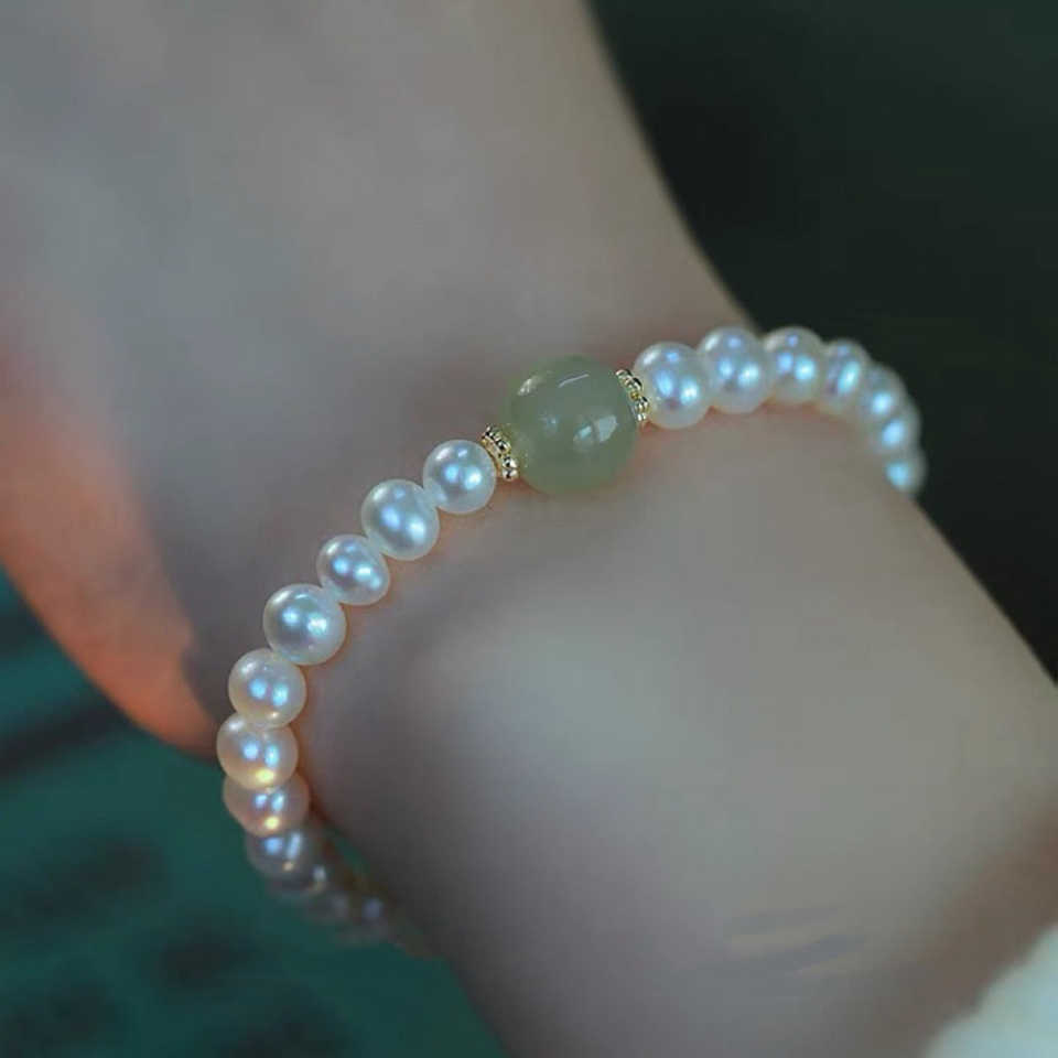 2022 New Flowing Women Freshwater Pearl Bracelet Natural Hetian Jade for Women
