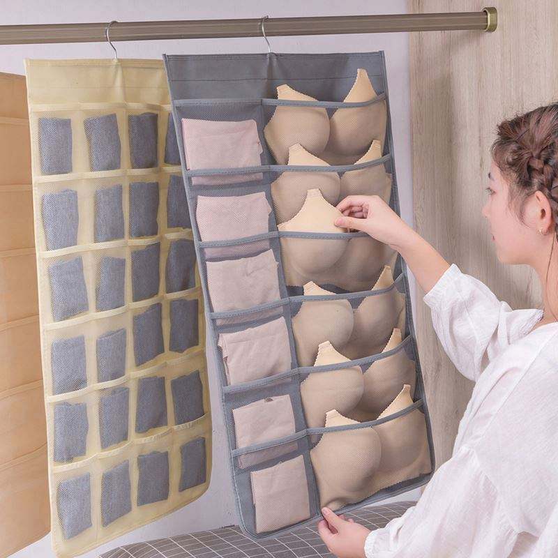 2022 New Mesh Hanging Storage Bag Living Room Underwear Organizer Socks Bras Double-sided Dustproof Non-Woven Fabric Square