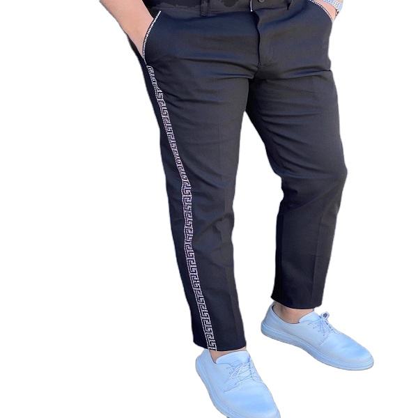 2025 Super Comfy Stretchy Black Printed Waterproof Side Stripe Check Skinny Fit Chinos Men