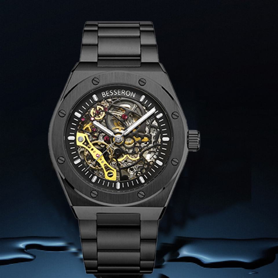 2023 Automatic Mechanical Watch Customize Your logo Skeleton Dial Black Waterproof Men Luxury Automatic Watches