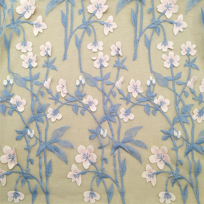 2023 Blue Pink Flower Mesh Embroidery Fabric with Multi-Color Lace for Sewing & Crafting