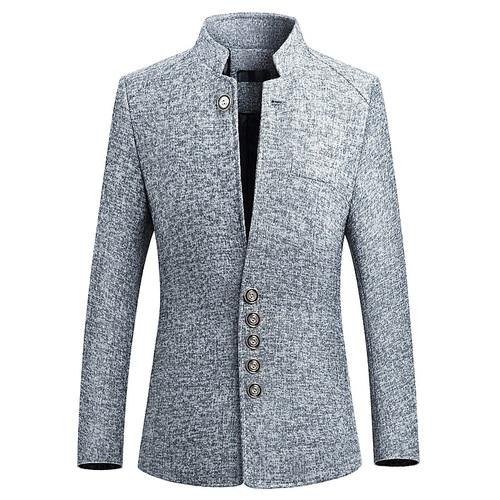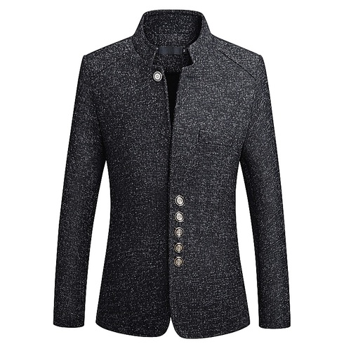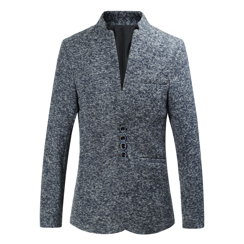2023 Custom Chinese Style Stand Collar Printed Suit Jacket-High-End Business Casual Large Sizes M-5XL Blue