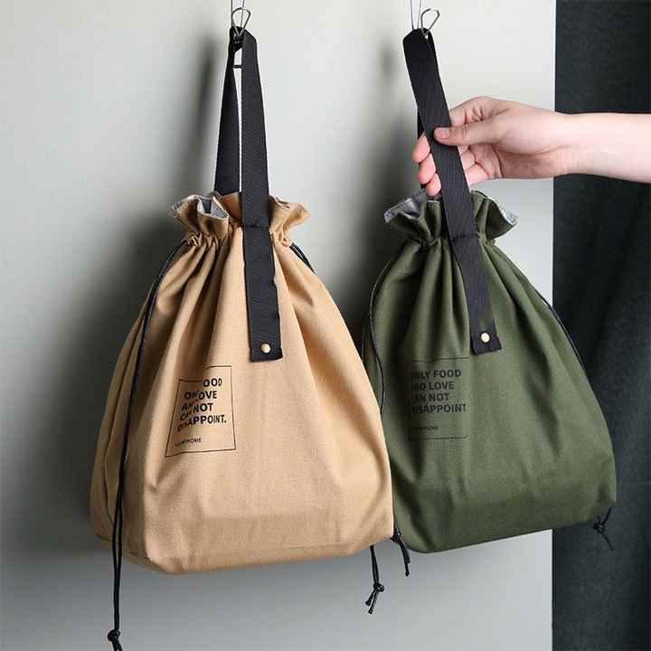 2023 Customize New Drawstring Lunch Bag Reusable Soft Canvas Tote Insulated Lunch Bag for Women Men