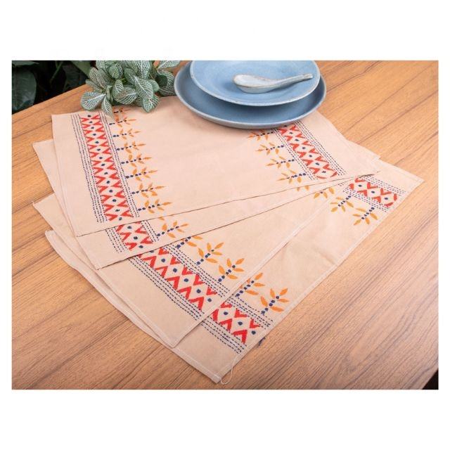 2023 Elegant Luxury Beige Digital Printed 100% Organic Cotton GOTS Certificate Washable Waterproof Rectangle Beautiful Table Mat