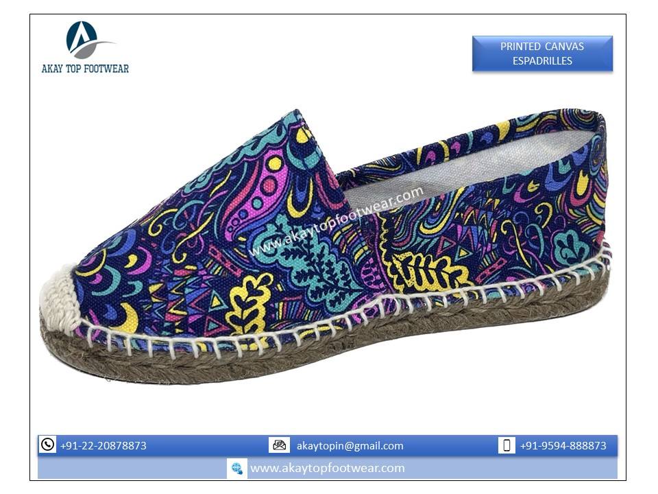 2023 Espadrilles Latest Arrived Autumn Lightweight Printed Flats Slip on Outdoor Canvas Espadrilles Women Casual Lady Soft Shoes