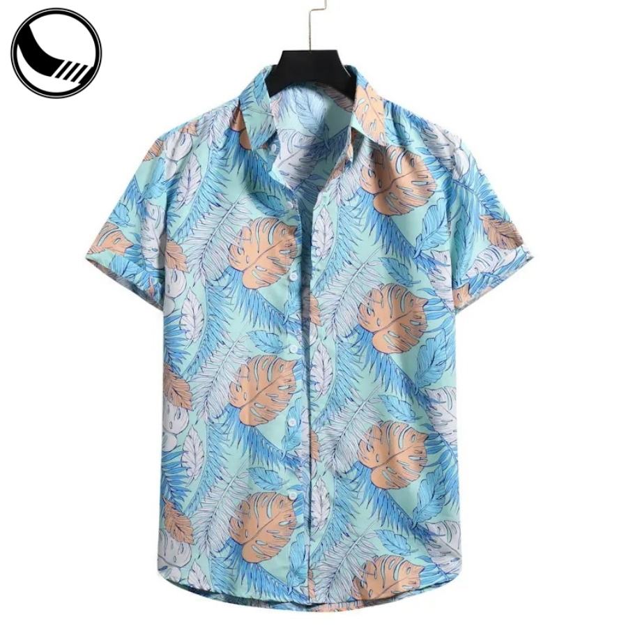 2023 Fashion Polynesian Men's Floral Short Sleeve Silk Casual Beach Summer Rayon Hawaiian Shirt