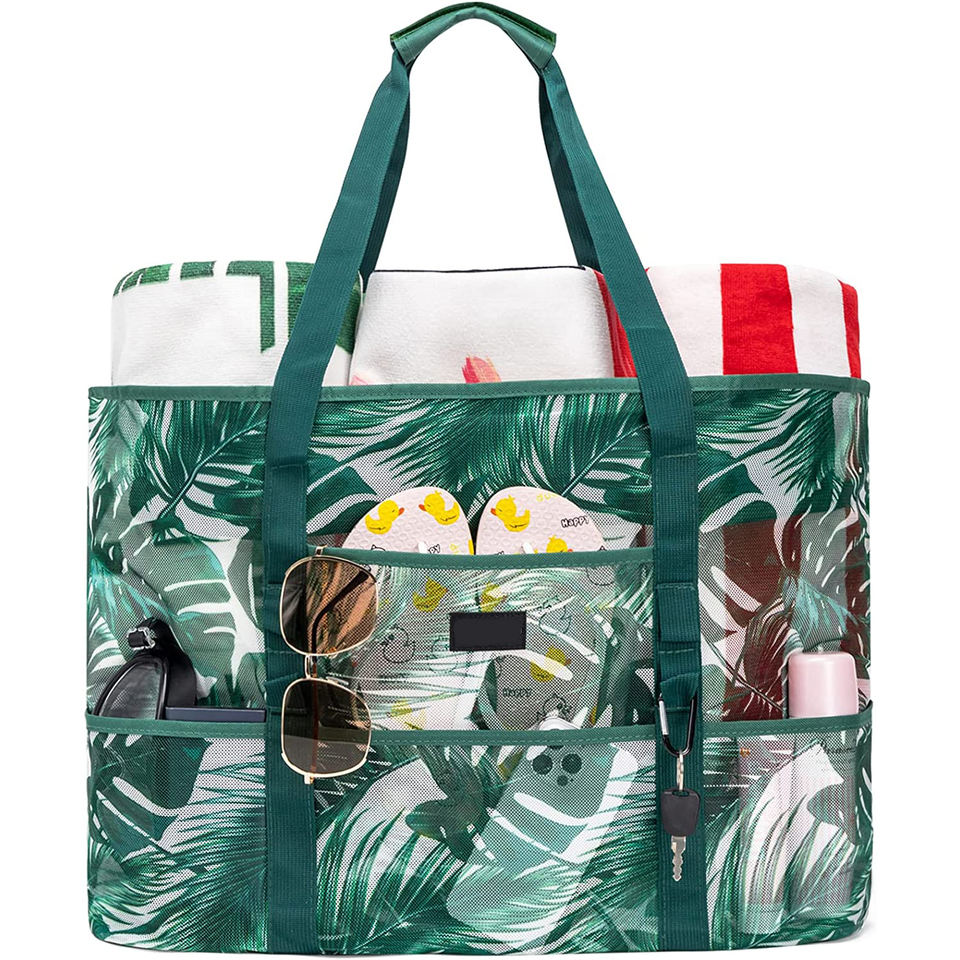 2023 Fashion Sand Proof Extra Large Custom Logo Women Men Mesh Tote Beach Bags With 9 Pockets